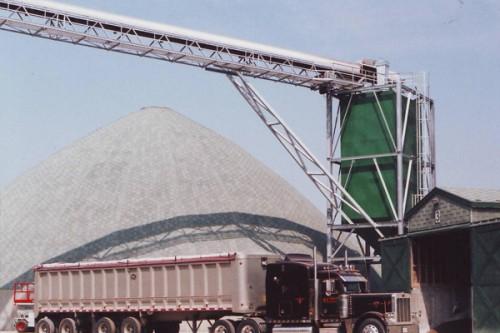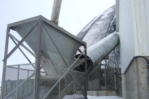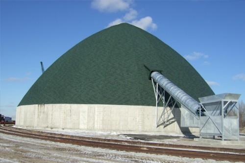 The Dome Loading Conveyor originates outside of the storage dome at either a below grade dump pit or above grade hopper, penetrates the dome through a specially designed dormer, and ends at the dome centre inside the structure. Utilizing this system it is possible to obtain the maximum storage capacity with minimal handling. In 2008 dome loading conveying systems were built for Hensall Co-Op in Hensall, Ontario and for Cargill AgHorizons in Camrose, Alberta. In the past, Dome Loading Conveyors have been installed for NSC Minerals in Fort Saskatchewan, Alberta, Cargill AgHorizons in Sarnia, Ontario and for Noranda at the Falconbridge Kidd Creek Timmins Minesite.