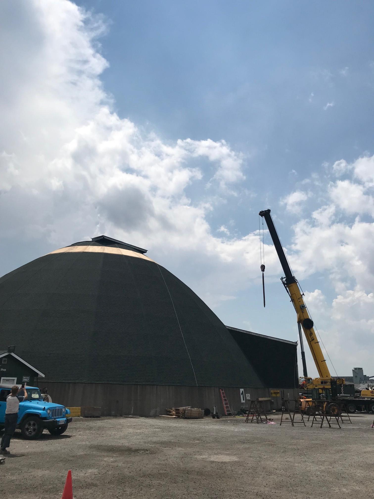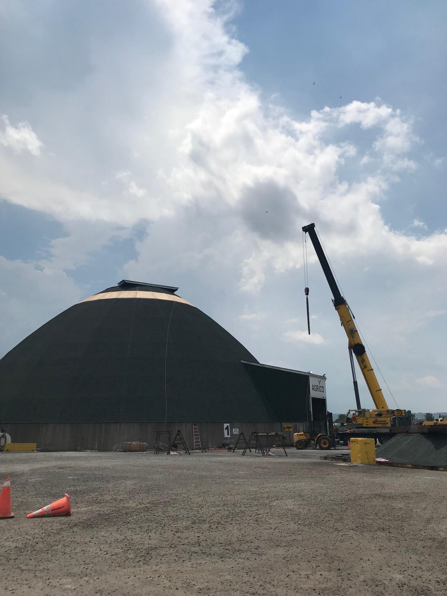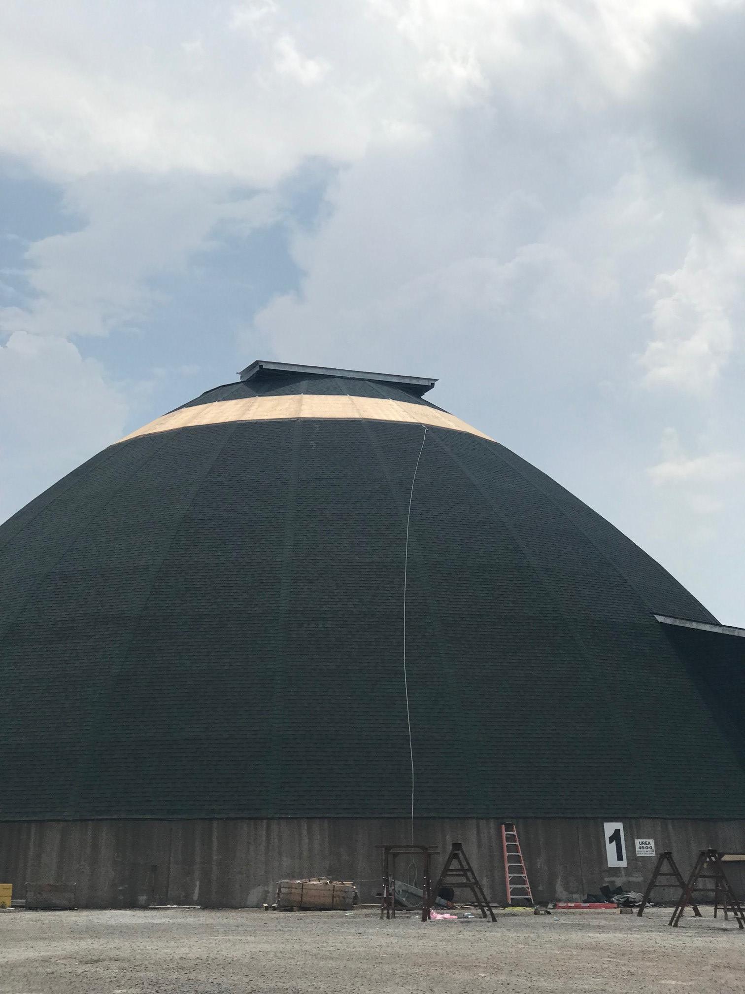 This Wood Domes is located in Hamilton at the Agrico Plant. This Wood Dome is 142ft in diameter on an 8ft concrete ring foundation. SSCC was to install a 32ft shipping opening hatch.