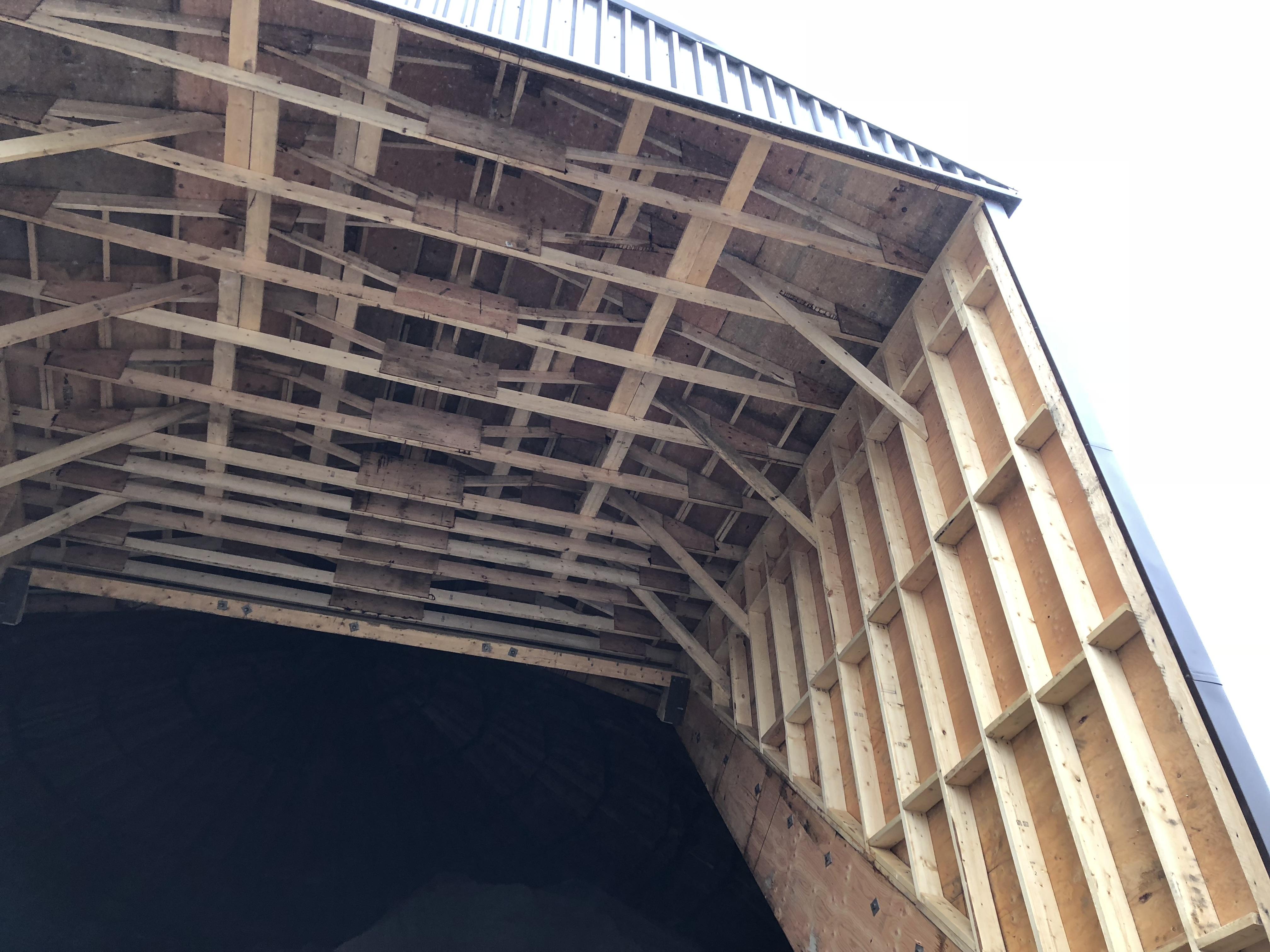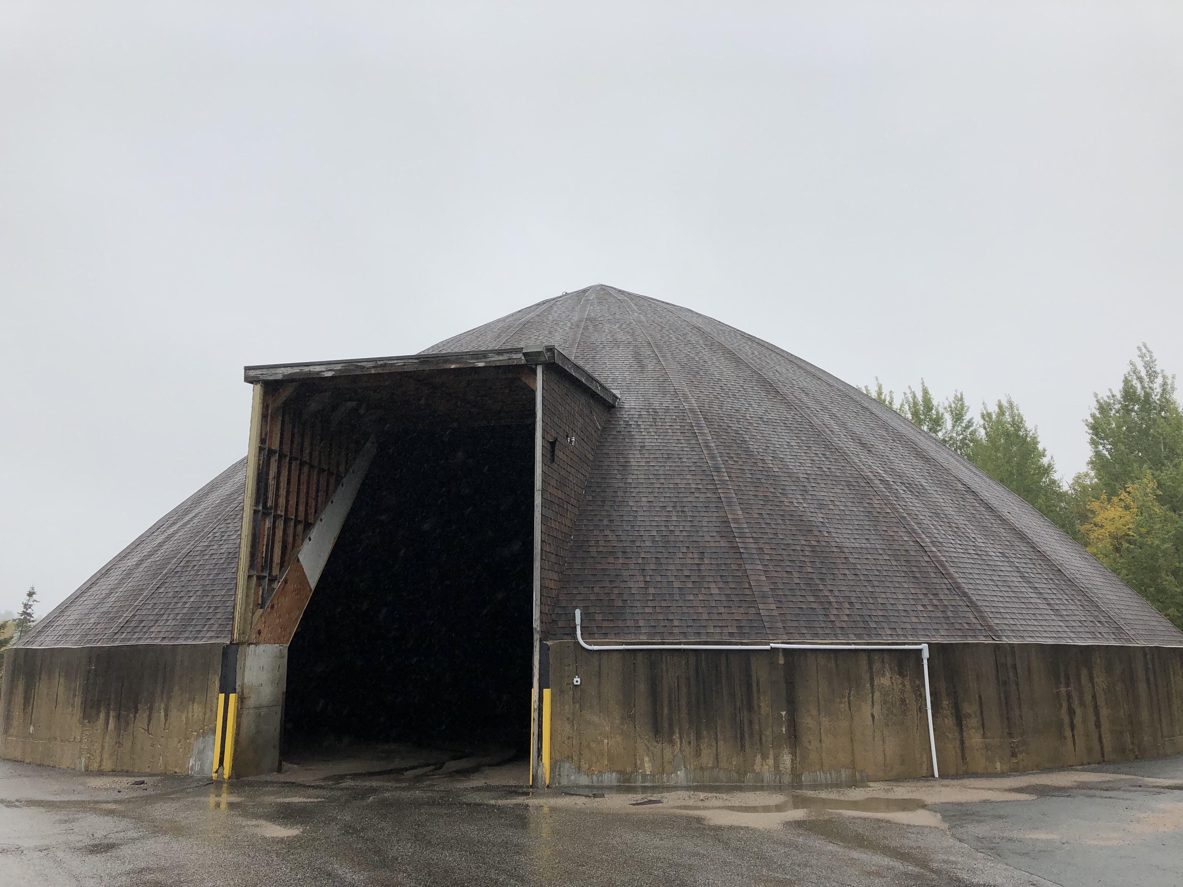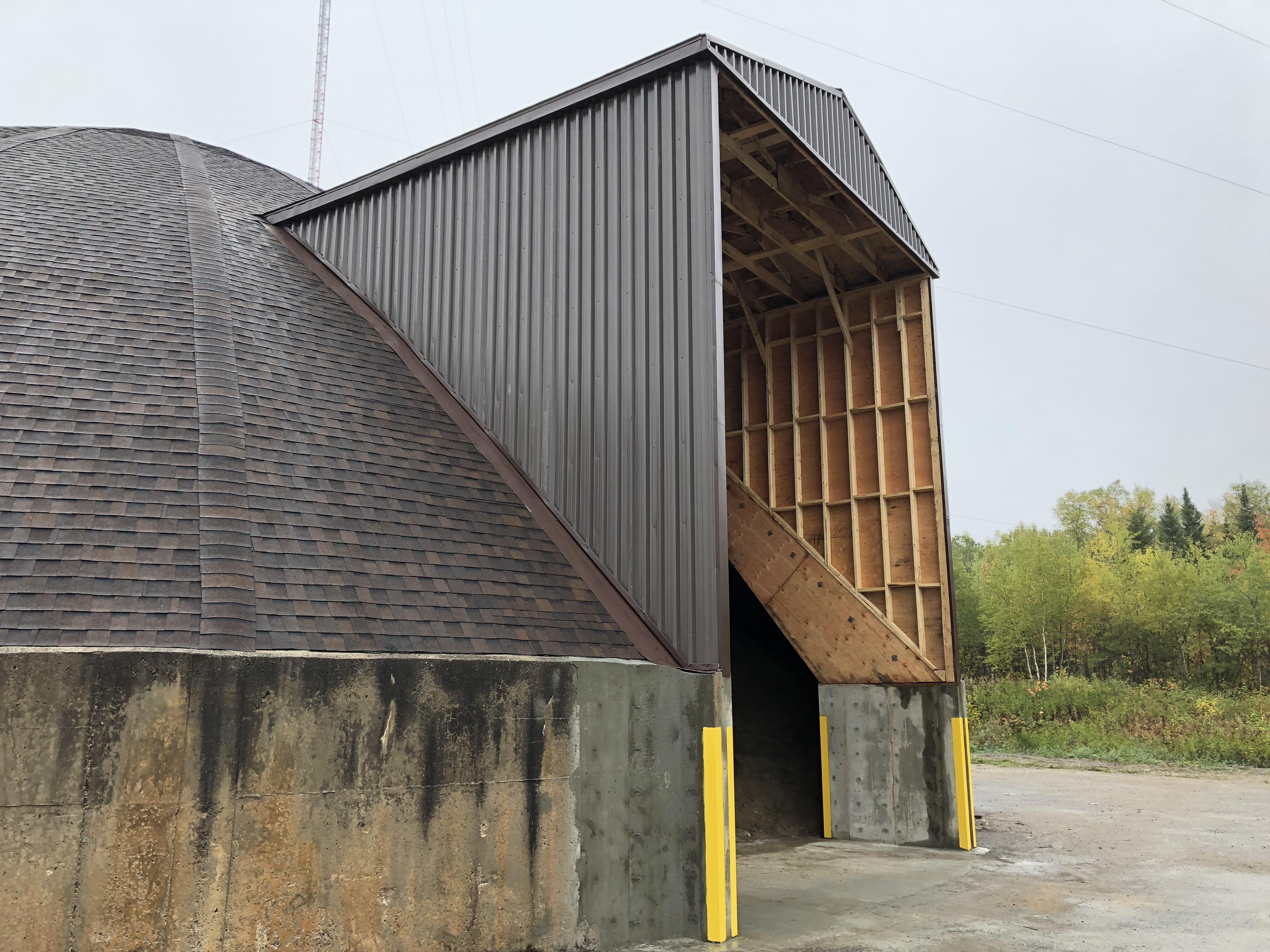 This is an existing 27m Wood Dome with one entrance. This 27m Wood Dome is located 80km south of Dryden on HWY 502. SSCC was to add a second entrance to existing 27m Wood Dome. Entrance size 18' x 24'.